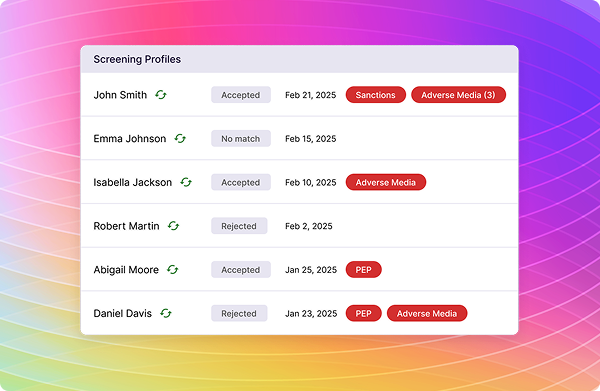 Our automated screening solution makes it easy to rapidly triage alerts, leave comments, track changes, and monitor risk across your client base in real-time.