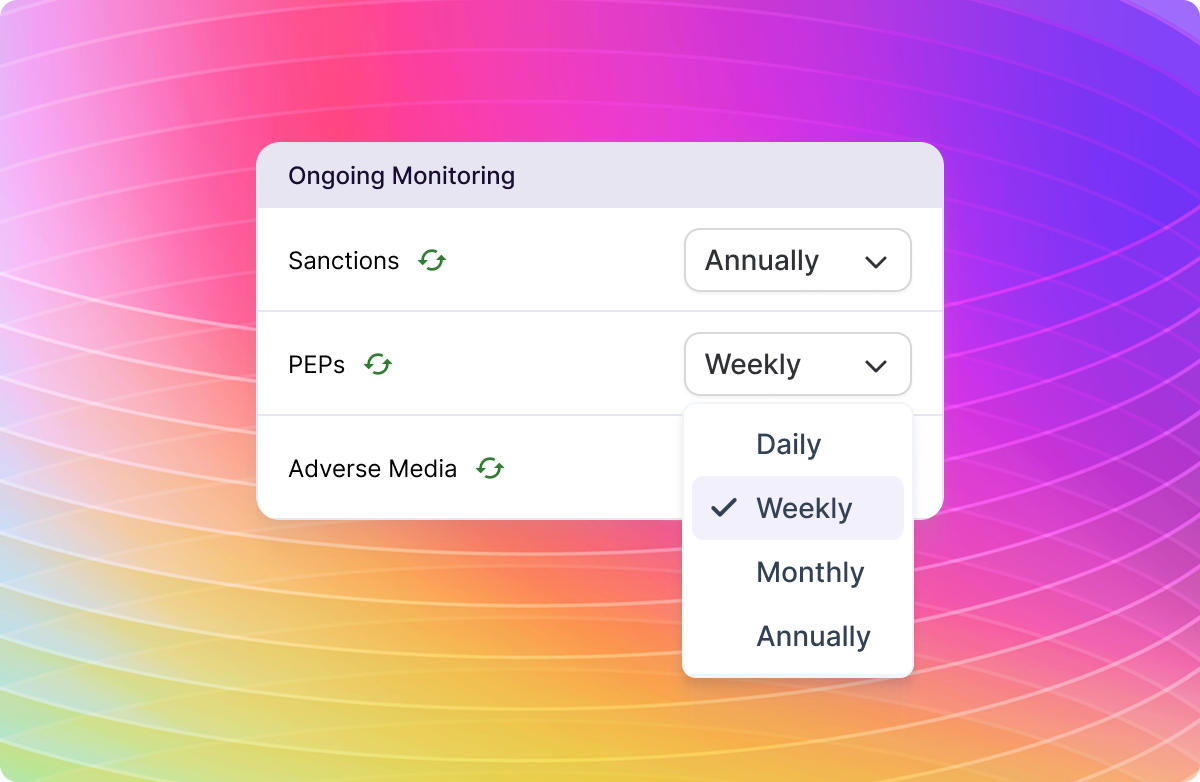 Configurable Monitoring Schedules: Set your screening cadence to align perfectly with your AML policy, and let Minerva automation handle the rest.